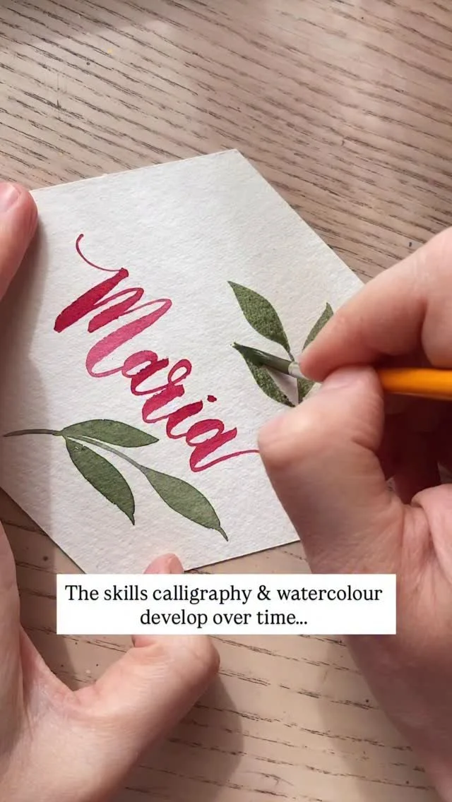 With nearly a decade of experience, I offer a calm, practical approach to learning dip pen modern calligraphy, brush lettering and watercolours through online classes, in-person events, private 1:1 sessions, group workshops, and creative experiences for teams or celebrations.