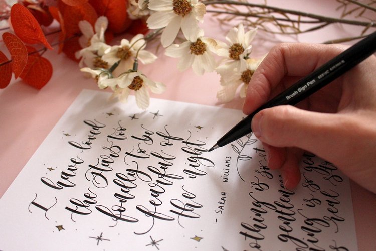 A basic brush pen or dip pen is a great place to start. Inside the membership, I offer recommendations and supply guides. You don’t need a huge stash to begin!