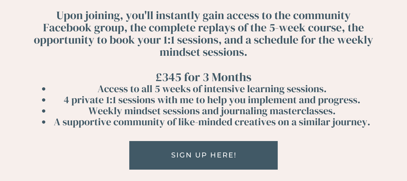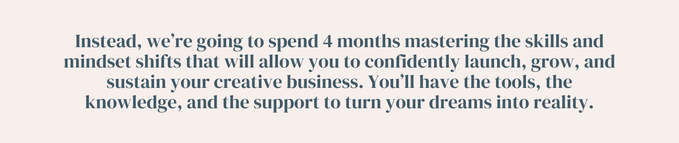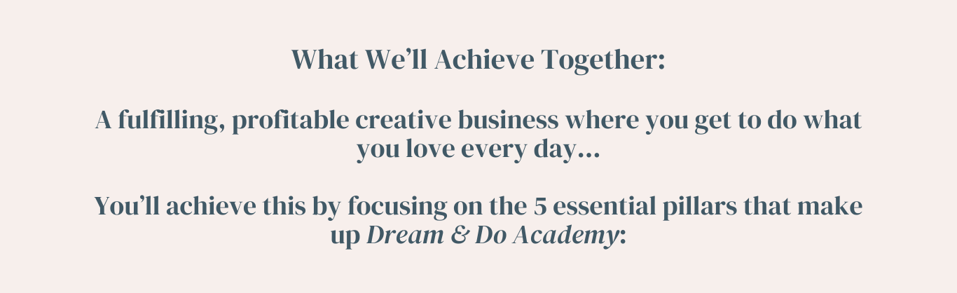 A fulfilling, profitable creative business where you get to do what you love every day…is what we’re going to achieve together!