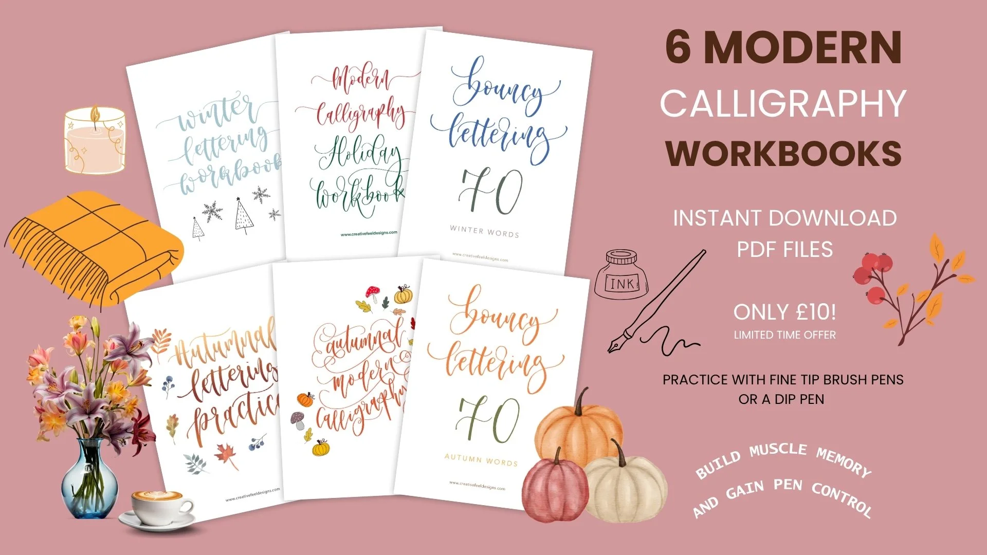 6 Seasonal Modern Calligraphy Digital / Printable Workbooks - 80% off!