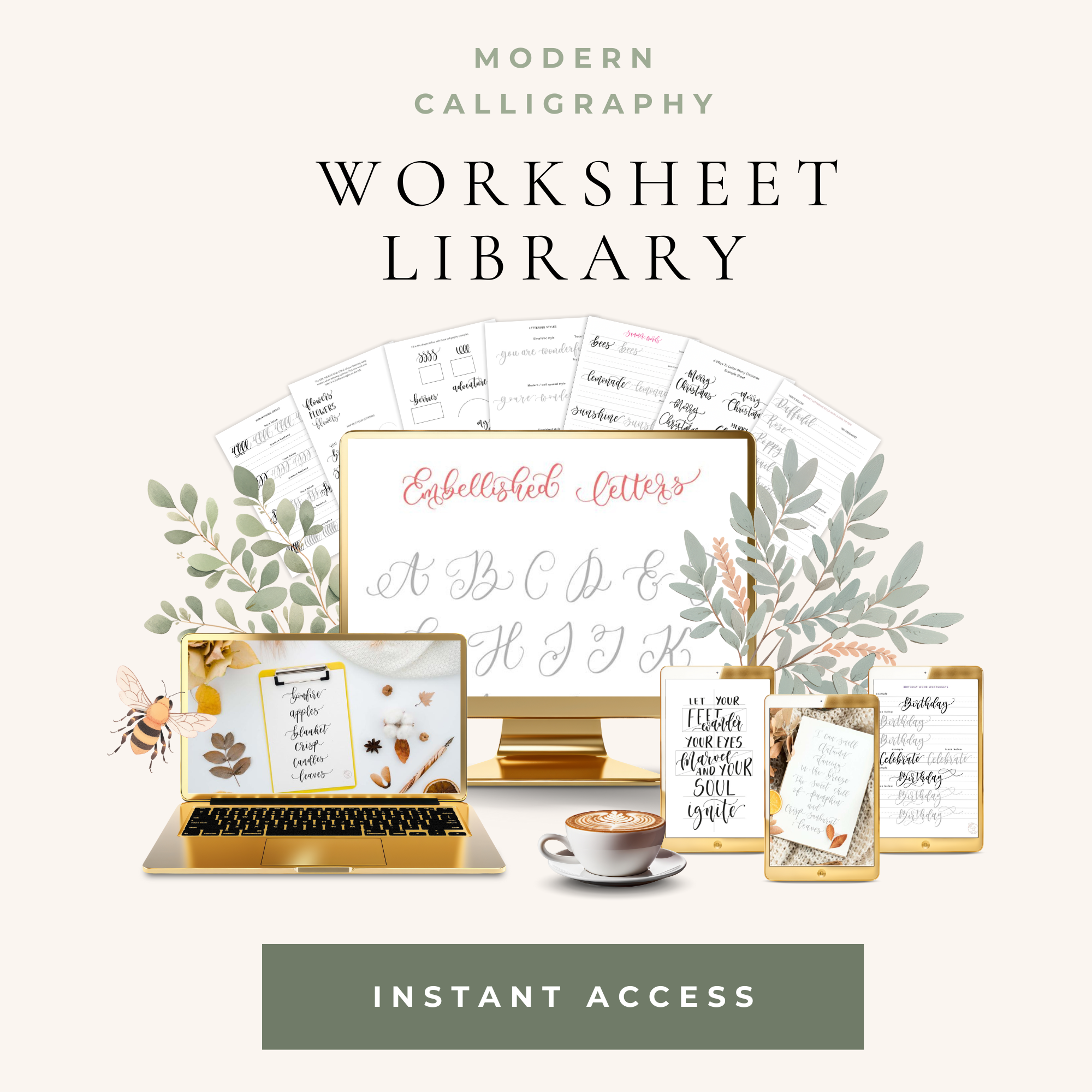 Packed with dip pen and brush pen calligraphy courses, lessons, inspiration, project ideas, monthly Coffee & Calligraphy sessions AND MORE!